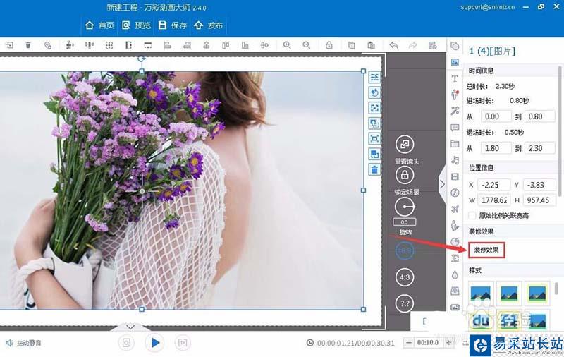 2、選擇圖片的裝修效果;萬彩動畫大師提供豐富的裝修效果,包括蒙版形狀、前景、陰影和邊框效果。自定義圖片效果使圖片更好地傳遞信息。