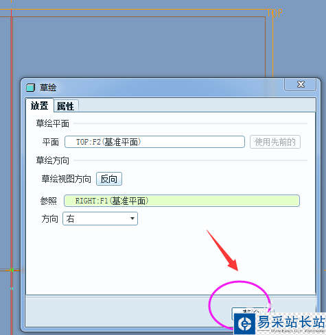 4、放置在草繪界面后的效果如下,會有一個默認(rèn)尺寸和位置。