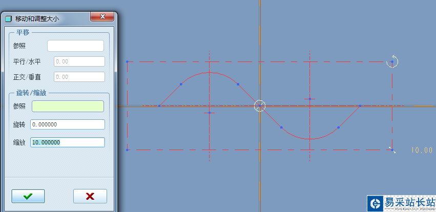 5、調整縮放比例為10或其它值,拖動中心點至原點,其余默認。