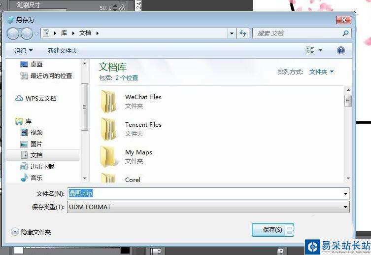 6、在文件夾選擇窗口中選擇好保存畫布的文件夾后,對文件進行命名,然后點擊保存。