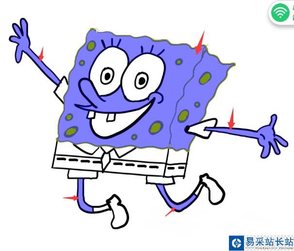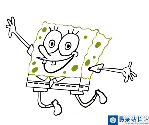 1、打開我們的海綿寶寶簡筆畫,由于它的頭部的線顏色和其它線的顏色不同,我們要改一下線稿的顏色,把線分一下組并合并,一個是頭的線搞圖層,一個是五官手腳的線稿圖層。
