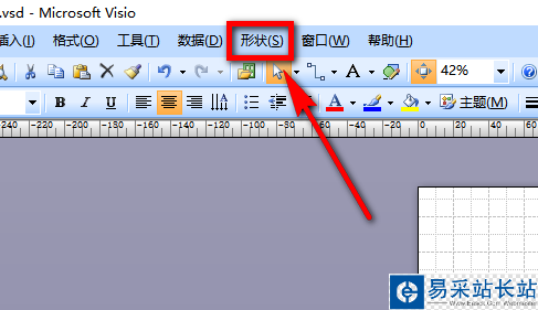 4、選中兩個圖形以后,在visio菜單中選擇【形狀】。