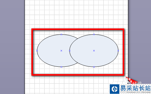 2、兩個圖形拖動到畫布上后,將兩個圖形重疊交叉在一起,如圖所示。