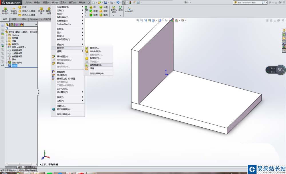 SolidWorks中垂直的實體想要焊接,該怎么使用圓角焊縫命令呢?下面我們就來看看簡單的實例教程,請看下文詳細介紹。