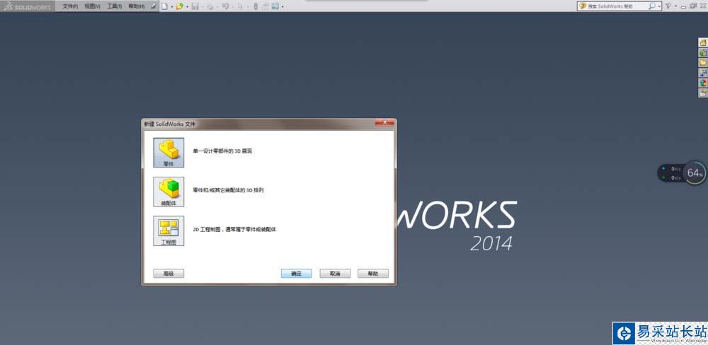 1、打開SolidWorks軟件,新建一個“零件”文件。
