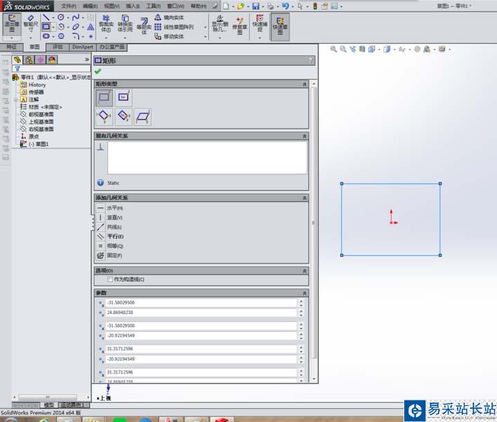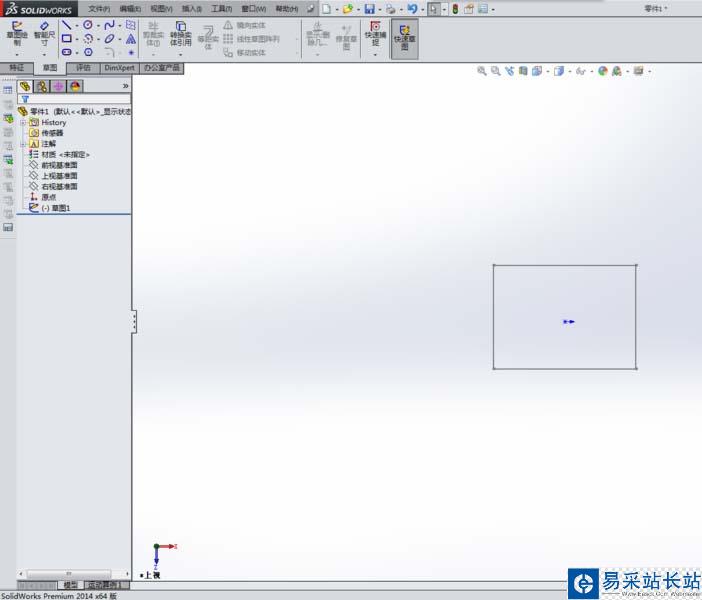 2、進入草圖,畫一個矩形