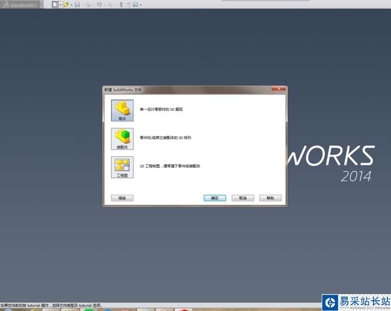 1、打開SolidWorks軟件,新建一個零件文件。