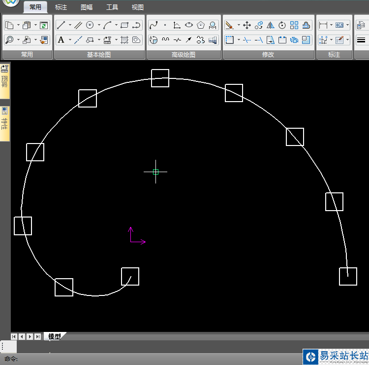 4、第2步選擇基點(diǎn),最好是選擇繪制陣列圖集的曲線端點(diǎn),防止出錯(cuò);