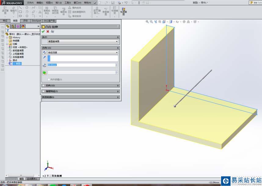 solidworks怎么使用拉伸命令繪制零件?