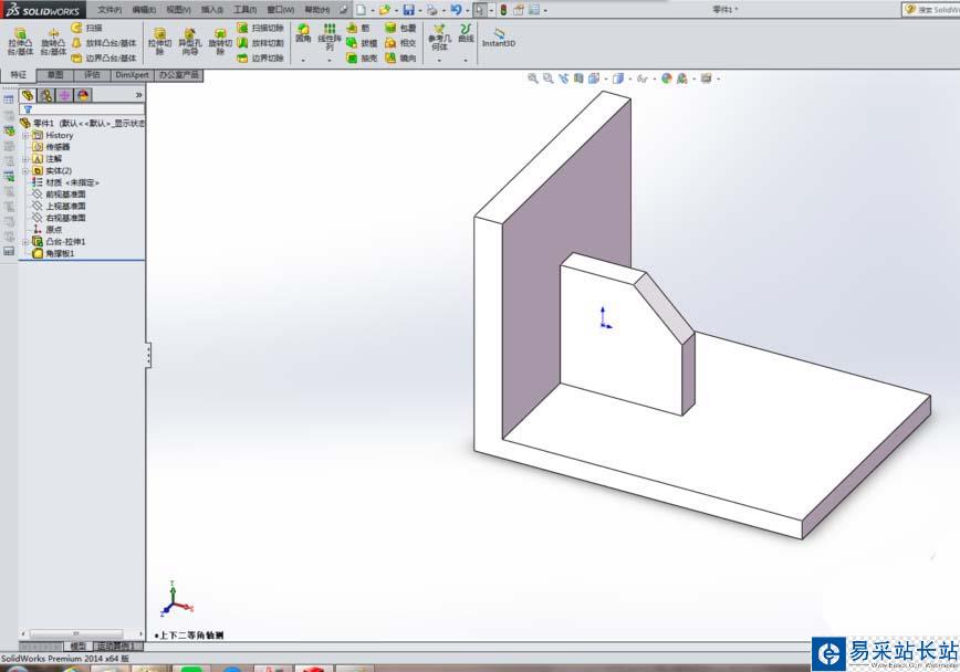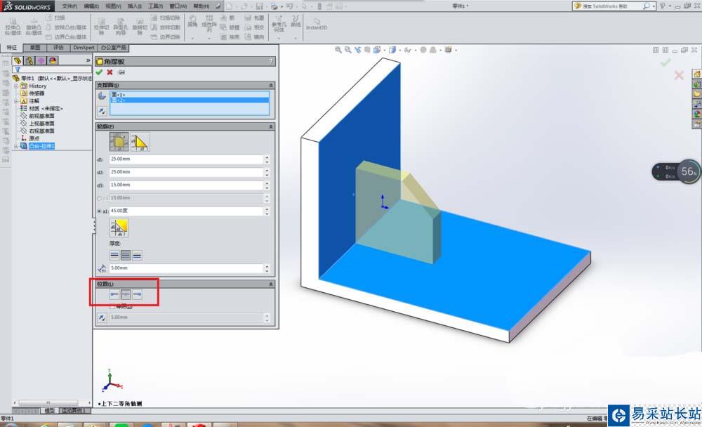 8、完成以上操作,點擊對話框左上角√圖標就OK了。如下圖所示,角撐板就創建完畢了。