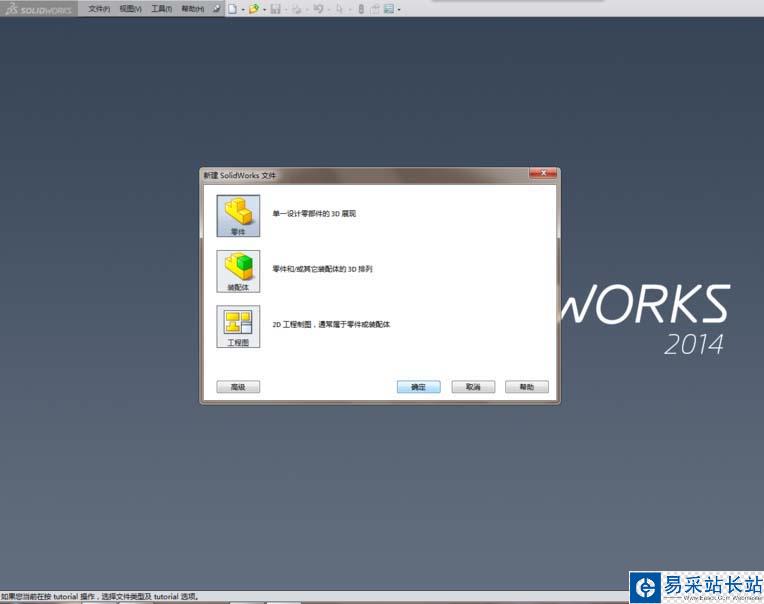 1、打開SolidWorks軟件,新建一個“零件”文件