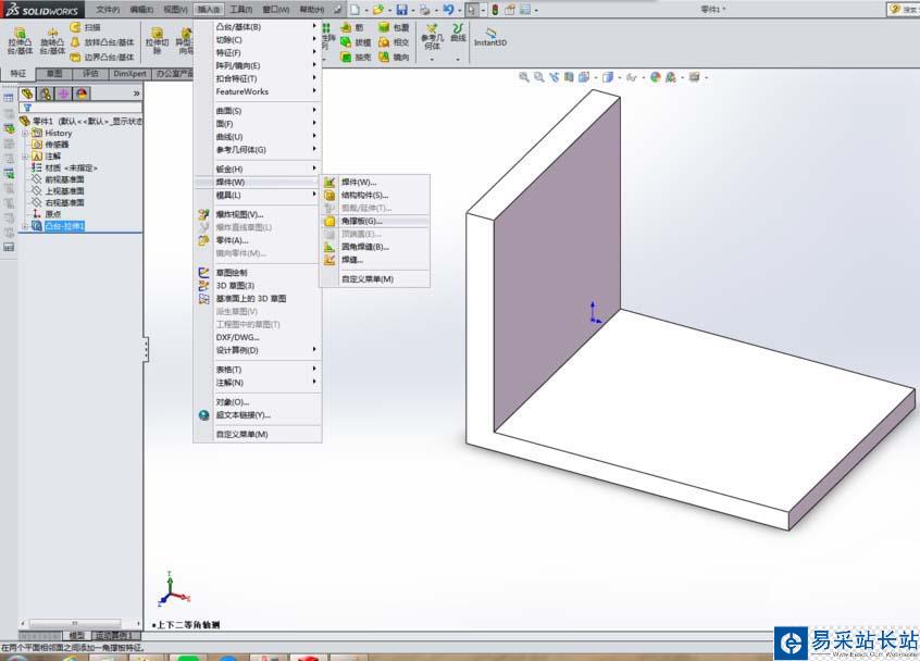 3、執行【插入】【焊件】【角撐板】,激活這個角撐板命令。