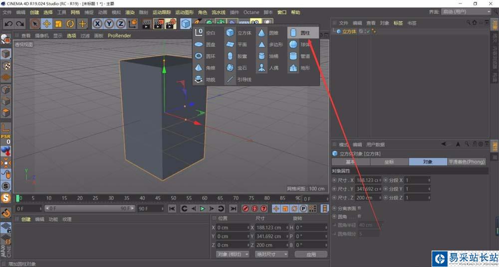 2、給立方體添加一個小伙們點擊多邊形物體的圓柱按鈕;