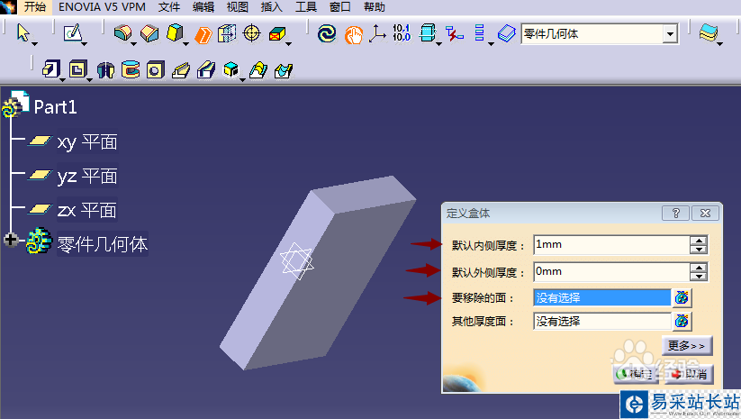 CATIA中繪制三維零件很簡單,今天我們就來介紹關于CATIA中盒體命令的使用方法,請看下文詳細介紹。