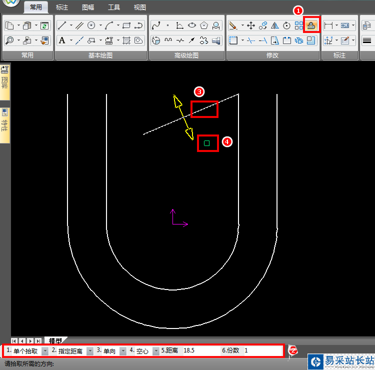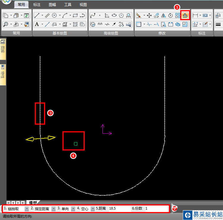 5、使用等距線命令,鏈?zhǔn)叭D形,向內(nèi)偏移18.5;