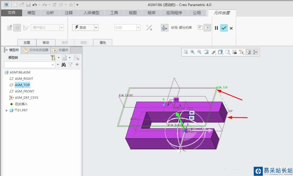 8、單擊”ASM_TOP“和”TOP“兩個基準面創建第三組約束。