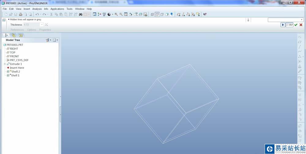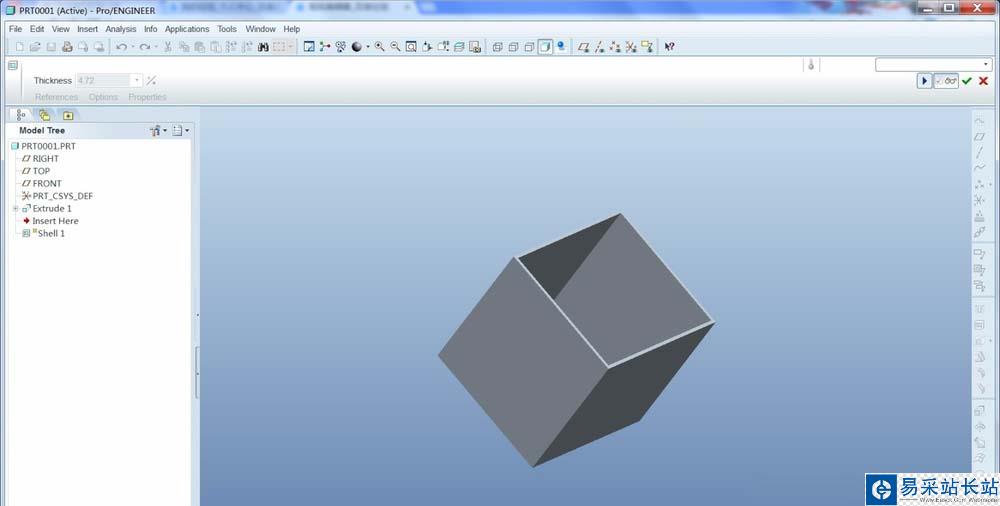 ProE想要制作一個空心的零件,類似瓶子一箱,需要使用抽殼工具實現,下面我們就來看看殼工具的使用方法。