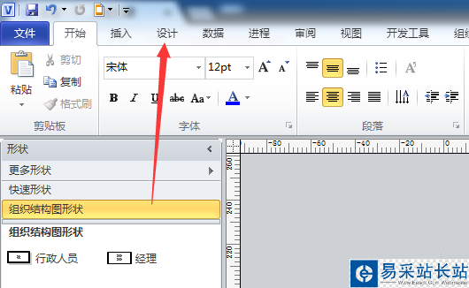 3、然后進行點擊的visio的菜單中的設計的菜單。