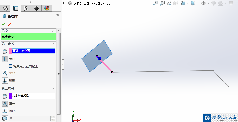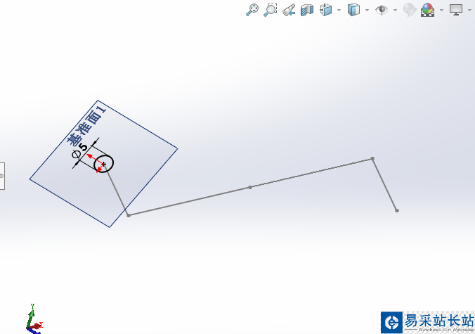 2、然后在一端的垂直面上建立基準面,并在該面上畫圓。