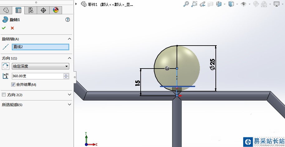 8、接下來我們把頭部補上。畫出草圖,然后使用旋轉凸臺命令。建模成功!