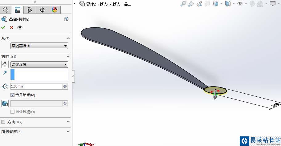 10、使用拉伸凸臺(tái)命令,花梗建模成功。花朵的基本模型完成了。