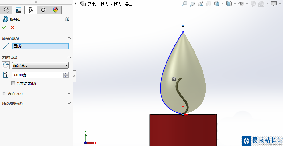 8、使用旋轉(zhuǎn)凸臺命令,得到燭火的實體模型。