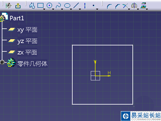 1、打開CATIA三維制圖軟件,點擊新建進入建模part模塊,依據鏈接進入草圖模式