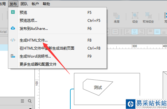 3、點擊了發布的菜單之后,彈出了下拉菜單選中為生成html文件的選項。