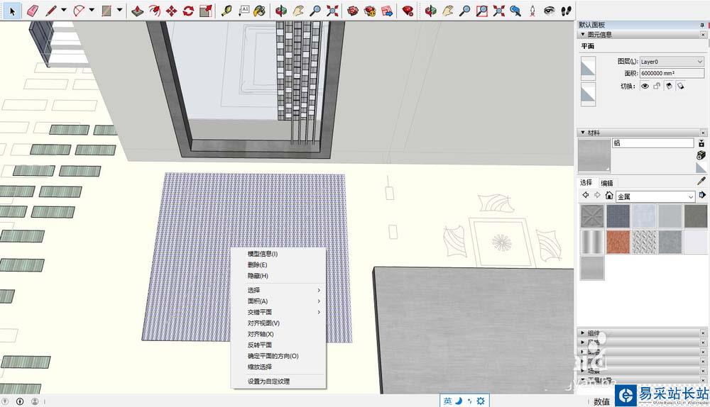 2、在su中,使用對應的工具,將屋頂的外輪廓線進行勾勒,即可形成一個屋頂平面,全選平面,按下鼠標右鍵,對模型進行編組。