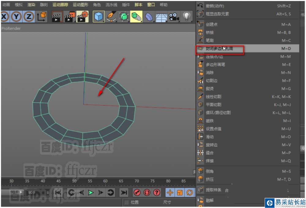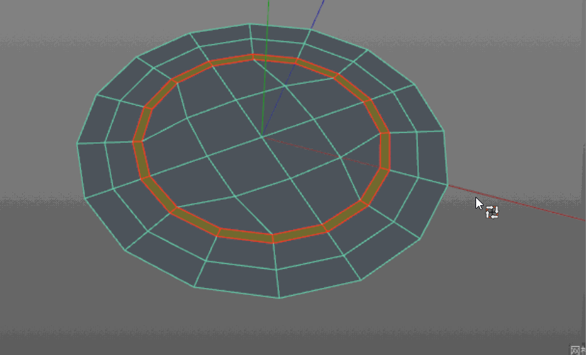 5、面模式中,選中上步倒角與圓盤內邊形成的一圈面,將其刪除。在邊模式下,選中刪除面后的兩圈邊進行縫合。得到一個完整的新結構圓盤多邊形。