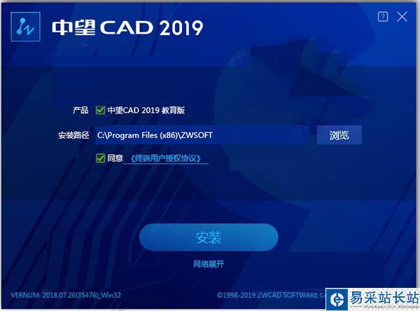 3、軟件安裝位置默認(rèn)為【C:/Program Files (x86)/ZWSOFT/ZWCAD 2019】一般不更改;
