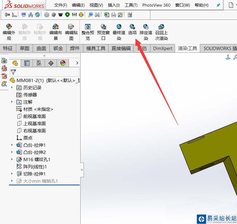 1、我們先調出渲染工具,右擊Solidworks的快捷欄,右擊找到渲染工具。