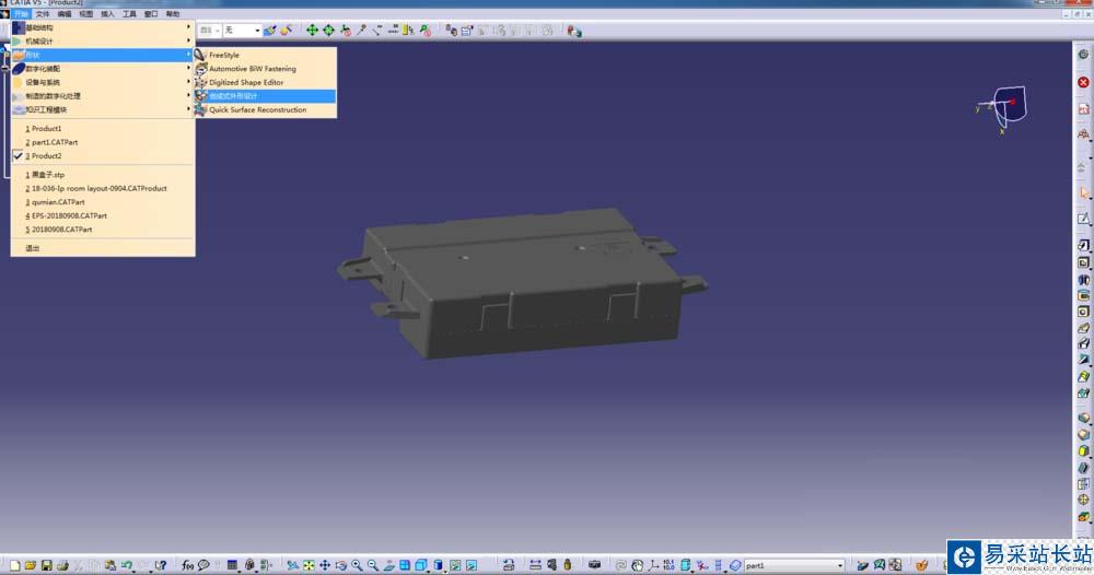 1、首先打開CATIA,點擊文件>打開,打開我們需要提取面體的零件;