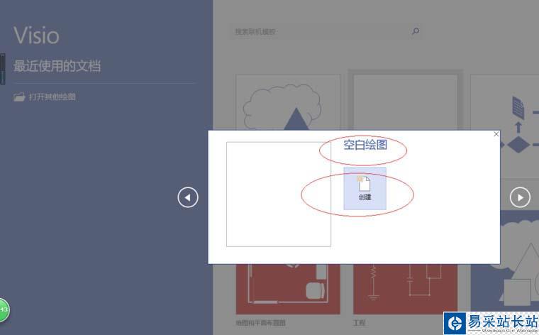 3、彈出"空白繪圖"確認對話框,如圖所示。選擇對話框左、右按鈕調整創建項目,確認點擊"創建"按鈕。