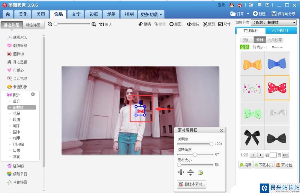 以上就是美圖秀秀中給圖片添加飾品蝴蝶結(jié)的教程,希望大家喜歡,請繼續(xù)關(guān)注錯(cuò)新站長站。