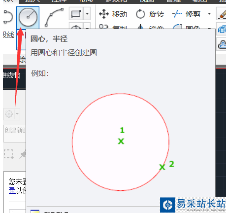 2、點擊命令之后這里注意下的命令中提只要按照進行操即可。首先選擇個圓心位置選擇好之后鼠標左鍵擊一次然后輸圓半徑然后再點擊鼠標左鍵或者點擊鍵空都可以。