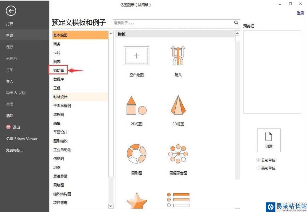 2、在預定義模板和例子中點擊剪切畫;