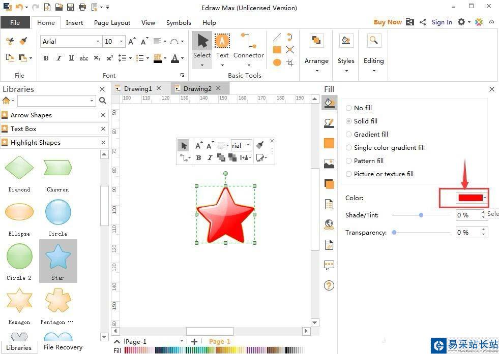 Edraw Max中想要?jiǎng)?chuàng)建紅色的五角星,該怎么創(chuàng)建呢?下面我們就來看看Edraw Max創(chuàng)建五角星的教程。