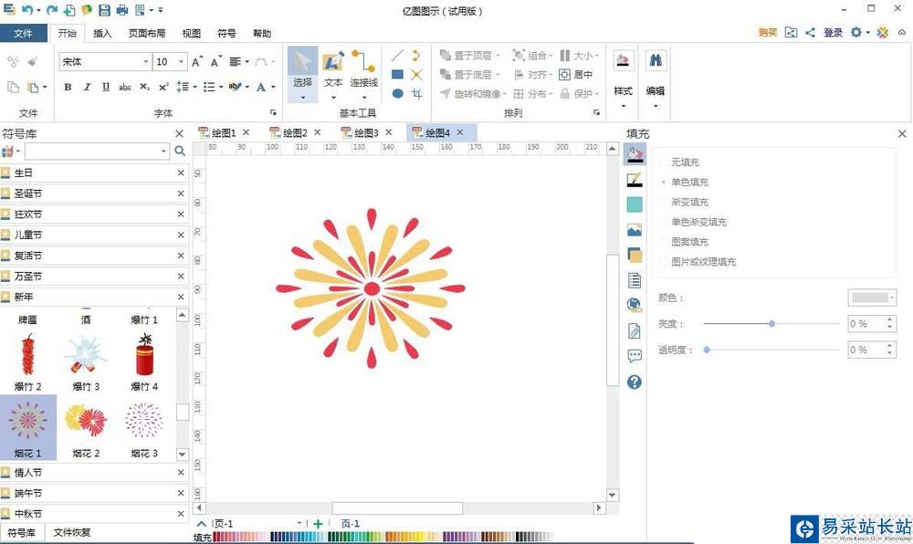 以上就是億圖圖示插入煙花綻放圖形的教程,希望大家喜歡,請繼續關注錯新站長站。