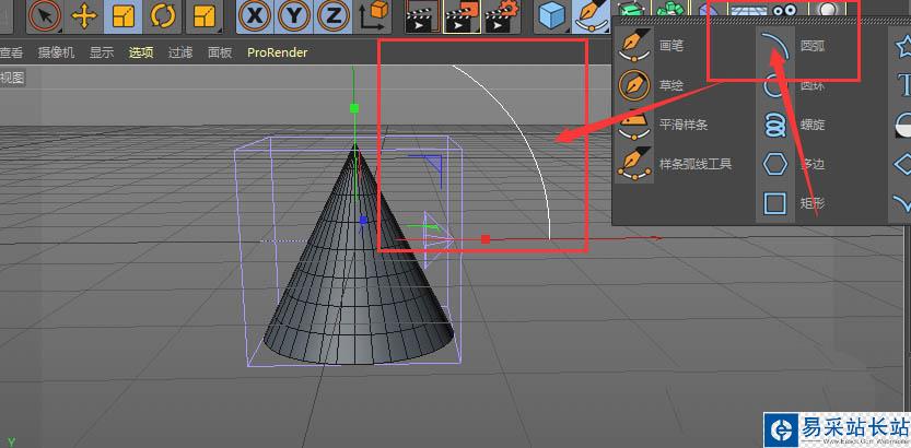 3、再創建一個圓弧,或者自己畫出一個圓弧的線條形狀