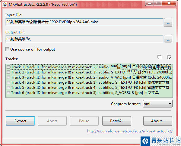 最后說明的是提取視頻或者音軌的方法,到你的Mkvtoolnix 安裝目錄下打開MKVextractGUI.exe