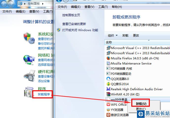 方法二:點擊“開始”==“卸載程序”==找到“wo99伴奏盒”==右擊==“卸載”