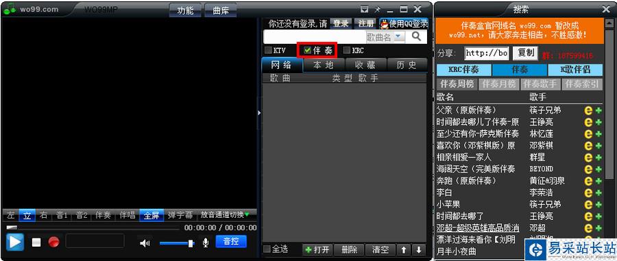 1、首先我們打開wo99伴奏盒,然后我們勾選“伴奏”