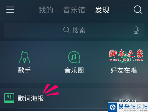 2、點擊切換到[發現],你在下面就能找到[歌曲海報]了,下面就要準備創建海報了。