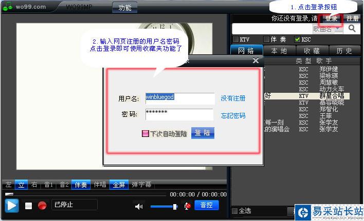 2、首先登錄,在線收藏夾功能,無(wú)論何時(shí)何地輕松調(diào)出自己的伴奏