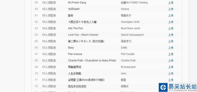 接下來就會出現(xiàn)一個需要上傳歌詞的歌曲清單,我們就可以根據(jù)我們的興趣或者根據(jù)積分的多少選擇自己要上傳的歌曲名稱