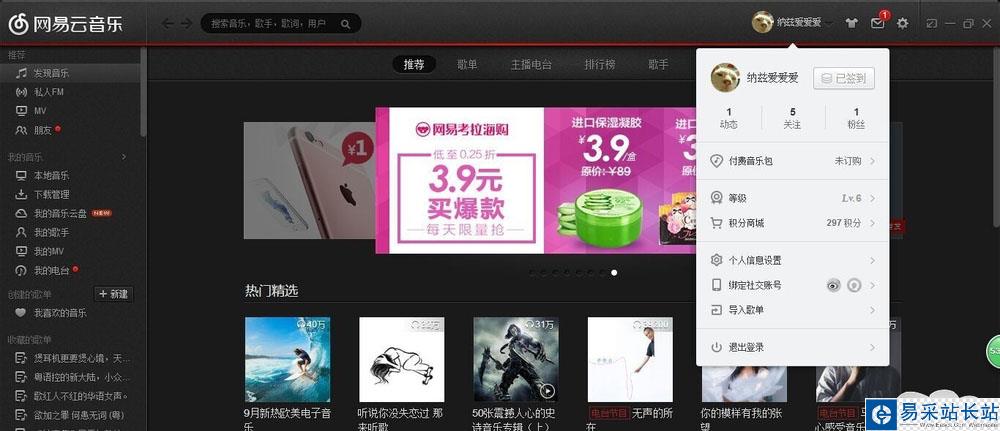 首先打開網(wǎng)易云音樂電腦客戶端,登陸自己的網(wǎng)易云音樂號,圖片如下。