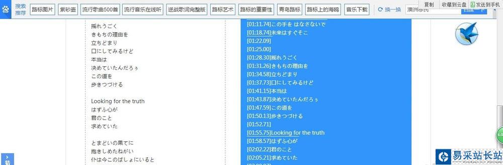 我以路標歌曲為例子,現(xiàn)在網(wǎng)頁上搜索路標的歌詞,最好是搜到帶有時間軸的,這樣積分會更高一些。然后選擇復(fù)制歌詞或者下載歌曲文件,根據(jù)自己搜到的實際情況為準。