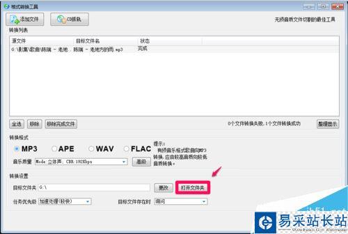 轉(zhuǎn)換完成,我們點擊:打開文件夾,查看轉(zhuǎn)換的歌曲;