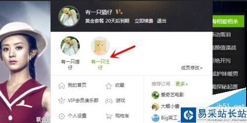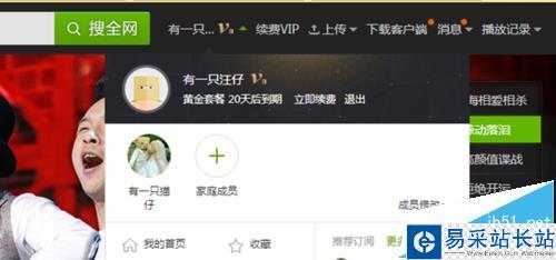 6、愛奇藝家庭成員怎么用?把主賬號的用戶名和密碼告訴需要登錄的人。然后讓對方登錄,登錄后把鼠標放在頭像上,會出現子賬號的名稱,點擊后切換。